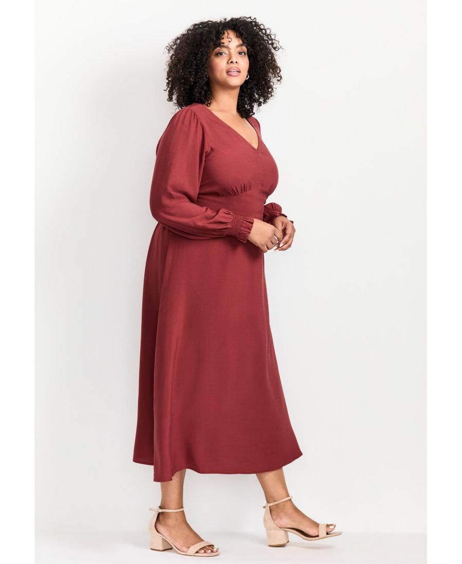 МАТЕРИАЛ: 100% ВИСКОЗА Длина по центру спины: стандартная 51"x22"; Большие размеры: 14-32 Свободный крой Платье миди с V-образным вырезом и рукавами-блузонами Другие волокна Машинная стирка Импортное производство