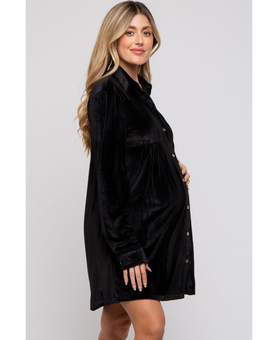 Черное бархатное платье для беременных на пуговицах Pinkblush, Black