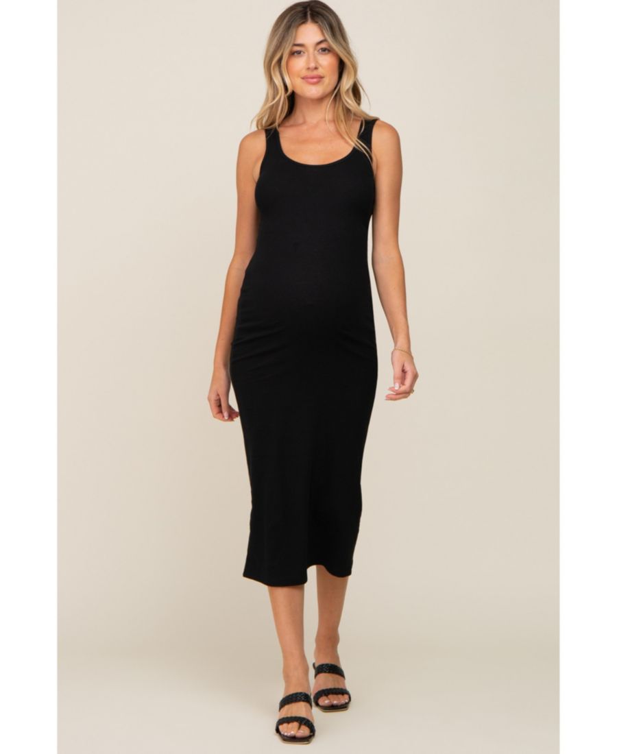 Черное ребристое базовое макси-платье для беременных Pinkblush, Black