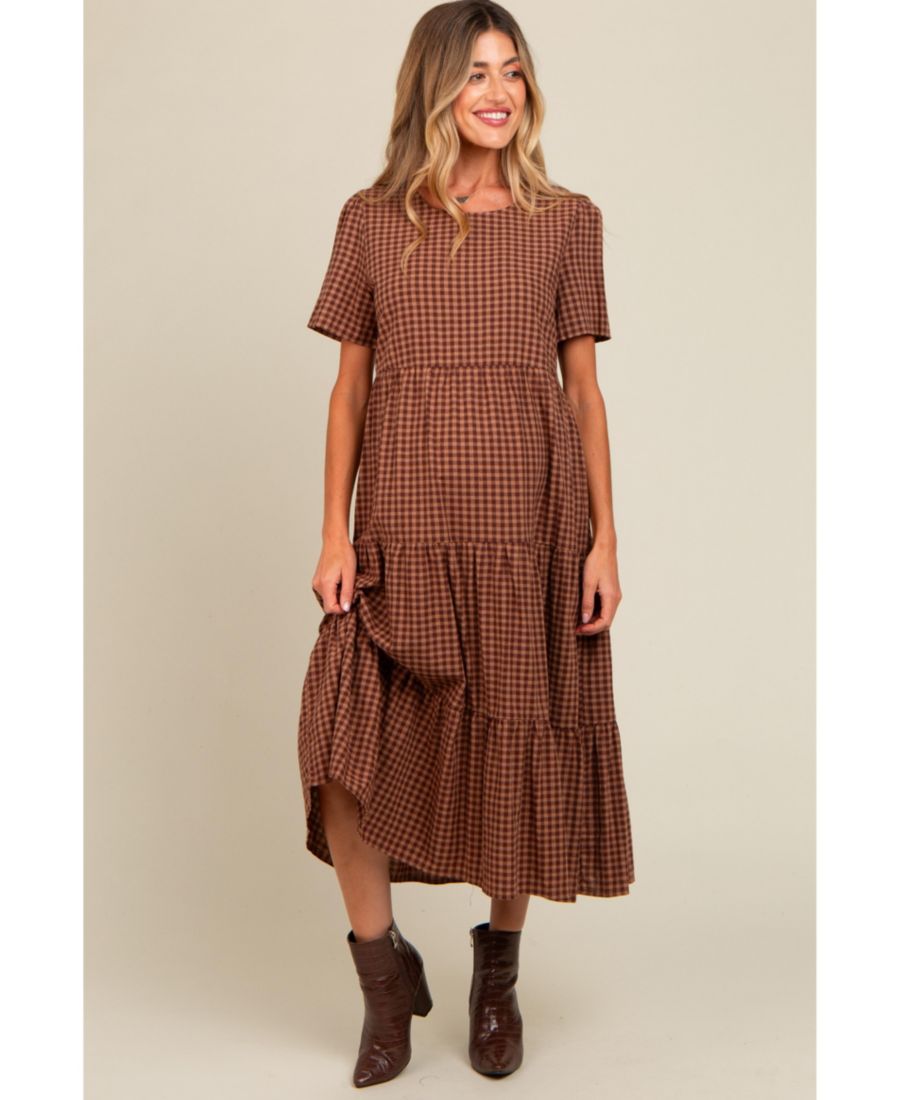 Платье-миди в клетку для беременных Pinkblush, Mocha