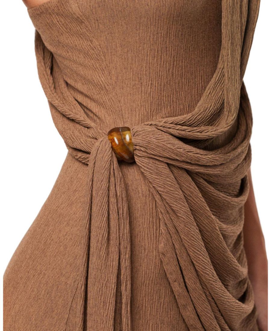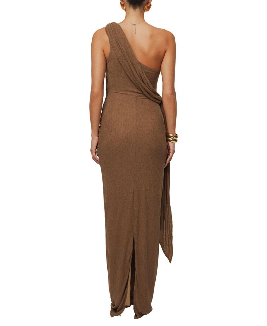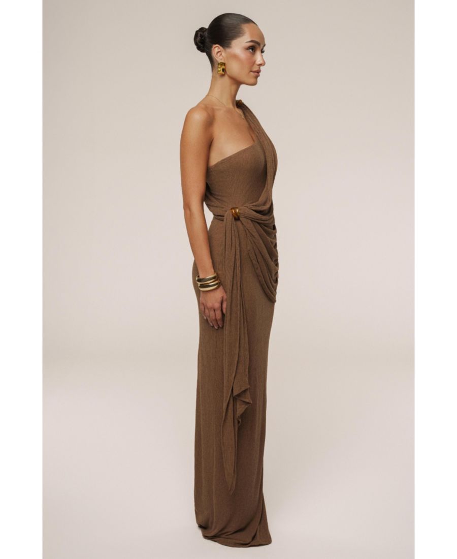 Наше платье-халат Насыщенный мокко, отличающееся непринужденной элегантностью, создано для того, чтобы произвести незабываемое впечатление. Изготовленное из мягкой эластичной трикотажной ткани, это макси-платье на одно плечо украшено изящными драпировками с акцентными деталями, ниспадающими по телу, создавая скульптурный, но грациозный силуэт. Драпированная накладка подчеркивает талию и бедра, создавая привлекательный, женственный силуэт, а длина до пола добавляет нотку вневременного очарования. Идеально подходит для изысканных вечеров и торжественных мероприятий. Скрытая боковая застежка-молния.