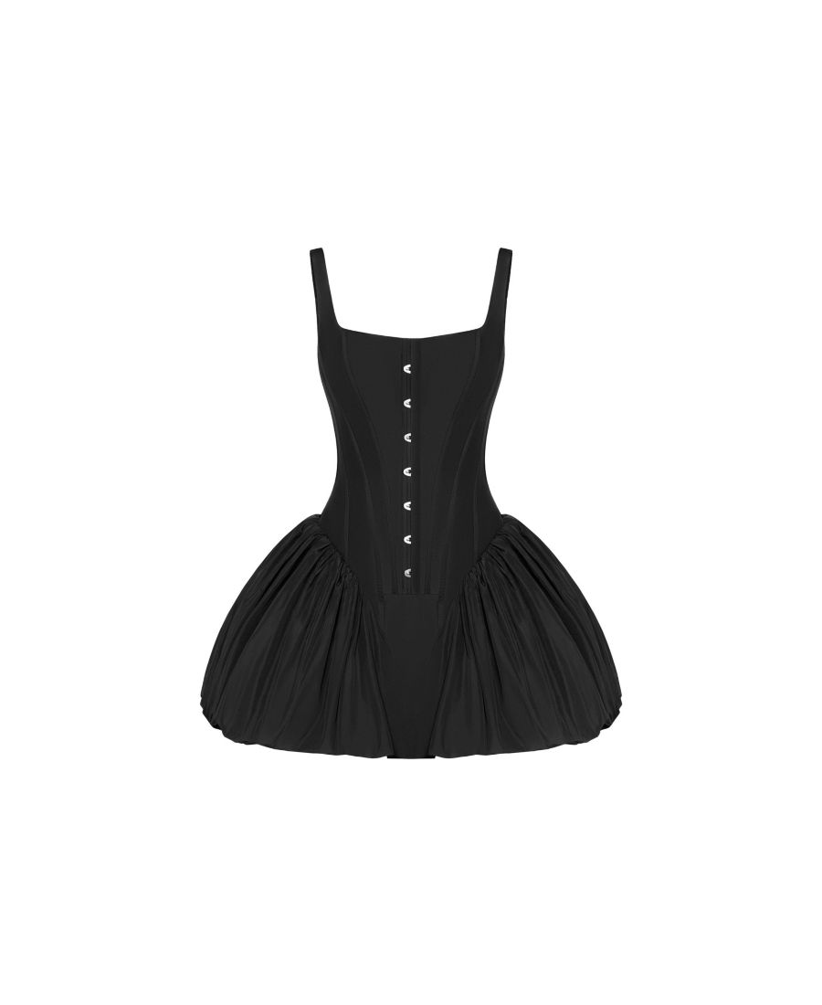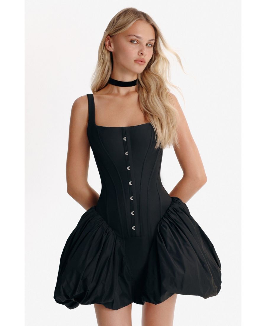 Выглядите стильно в этом черном мини-платье-корсете, созданном с заниженной талией, скульптурным силуэтом и объемной юбкой-баллоном, придающей образу игривый, кукольный шарм. Структурированный корсет имеет прямой вырез с широкими поддерживающими бретелями, которые выгодно подчеркивают любую фигуру, а застежка на крючки спереди добавляет классический штрих, а шнуровка сзади позволяет полностью регулировать посадку. Платье универсального фасона, оно подчеркивает талию и прекрасно подходит для всех типов фигур и роста, обеспечивая безупречный, модельный образ в реальной жизни.