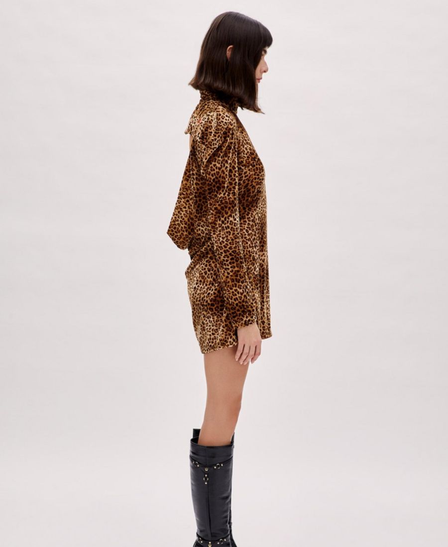 Женское хлопковое платье без спинки PCFG, Leopard print