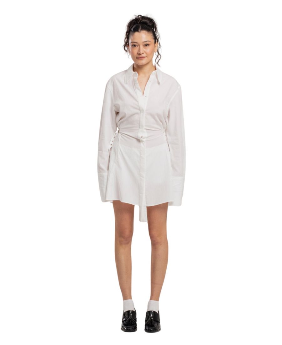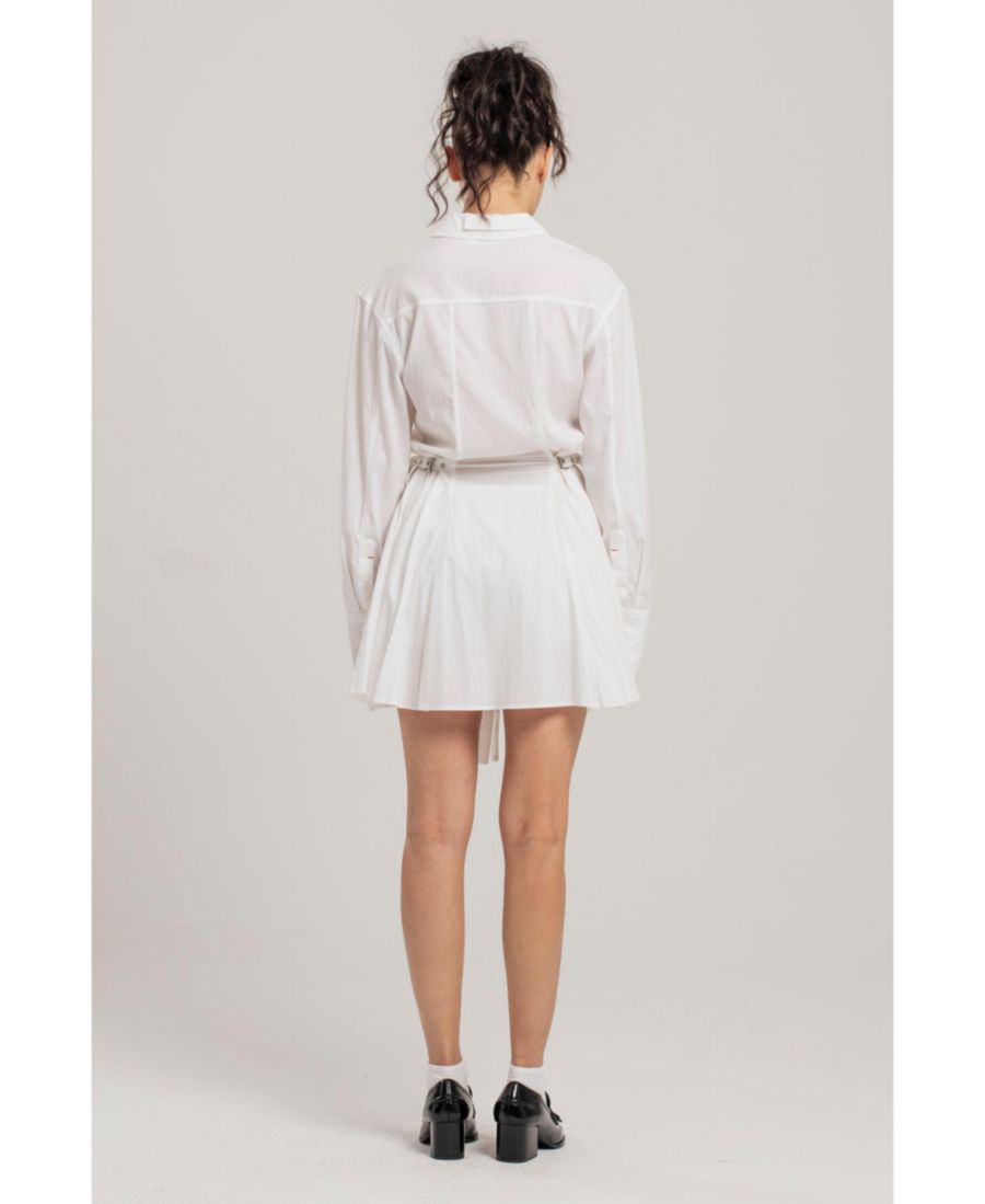 Платье Free Heaven Pleated Dress в цвете Blanc de Blanc - это белоснежное мини-платье-рубашка с традиционным воротником-стойкой и потайной застежкой на пуговицы спереди, создающей элегантный силуэт. Фирменные складки в нижней части платья добавляют объем, движение и легкую структуру, а прямой силуэт облегает фигуру, не прилипая к телу, и мягко подчеркивает плечи и грудь. Короткие, слегка удлиненные рукава-крылышки поддерживают лаконичный минималистичный стиль, а дышащая ткань отводит влагу, что делает платье идеальным для дневного и вечернего ношения весной/летом.