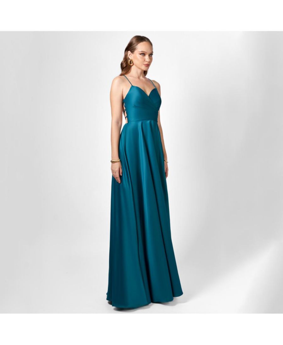 Элегантность, неподвластная времени, с современным акцентом: атласное платье на тонких бретелях - идеальный выбор для вечернего выхода. Платье с V-образным вырезом и изящными тонкими бретелями имеет структурированный лиф с косточками и встроенными чашечками для поддержки и подчеркивания фигуры. Зауженная талия переходит в мягкую юбку А-силуэта с соблазнительным боковым разрезом, а низкий открытый вырез на спине добавляет очарования. Изготовленное из гладкого атласа, с полной подкладкой и потайной молнией, это платье великолепно смотрится с любого ракурса.
