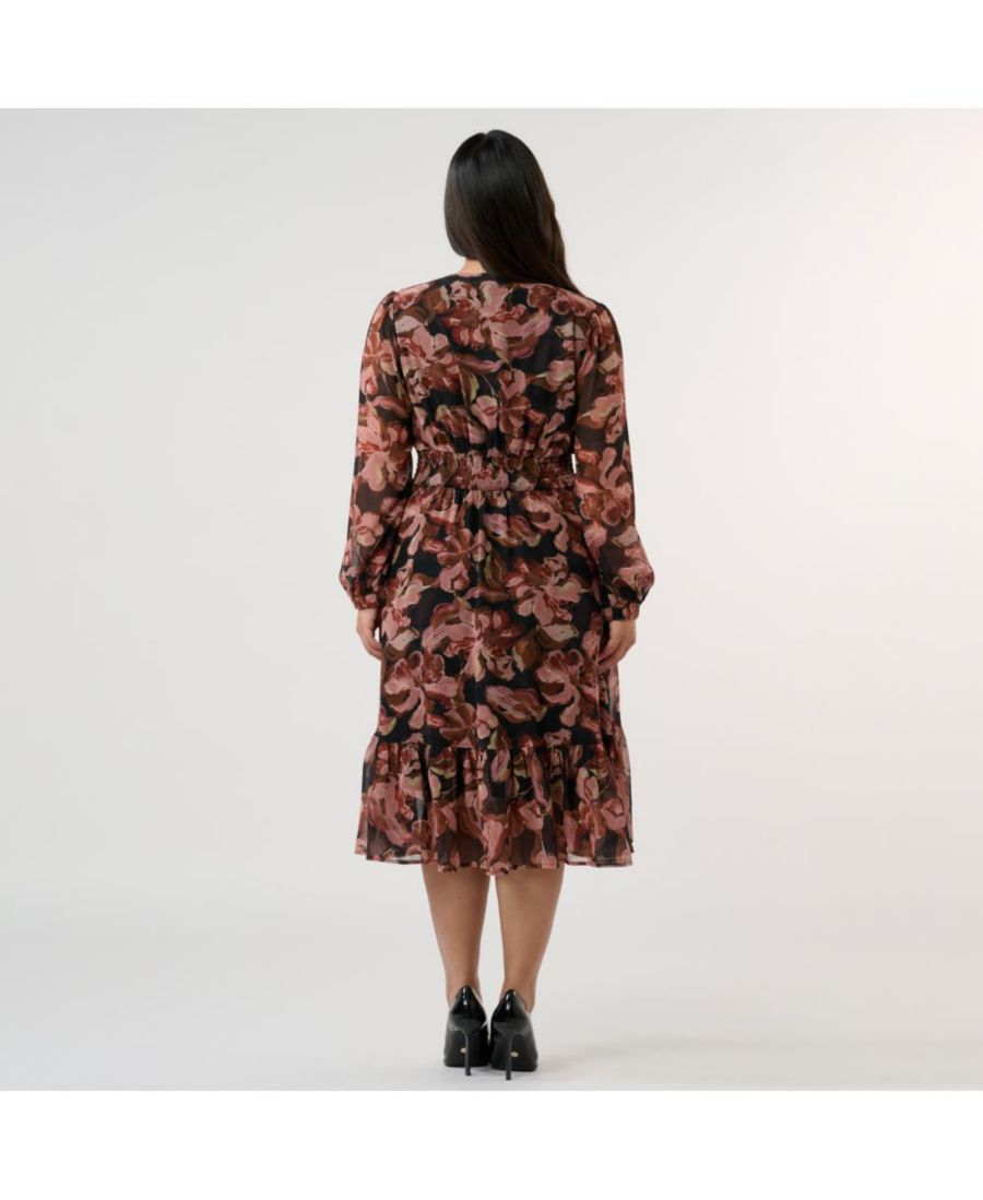Это миди-платье приталенного силуэта с расклешенной юбкой, сшитое из гладкого полиэстера с полностью подкладкой, обеспечивает комфорт и подчеркивает фигуру благодаря эластичной талии. Глубокий V-образный вырез и длинные рукава создают изысканный и стильный образ, дополненный присборенным поясом для дополнительной формы. Многослойный подол и эластичные манжеты создают струящееся движение и женственный шарм; идеально подходит для создания образов как днем, так и вечером, с ботинками или туфлями на каблуках. Основной материал: 100% полиэстер. Подкладка: 100% полиэстер. Машинная стирка. Импортный товар.