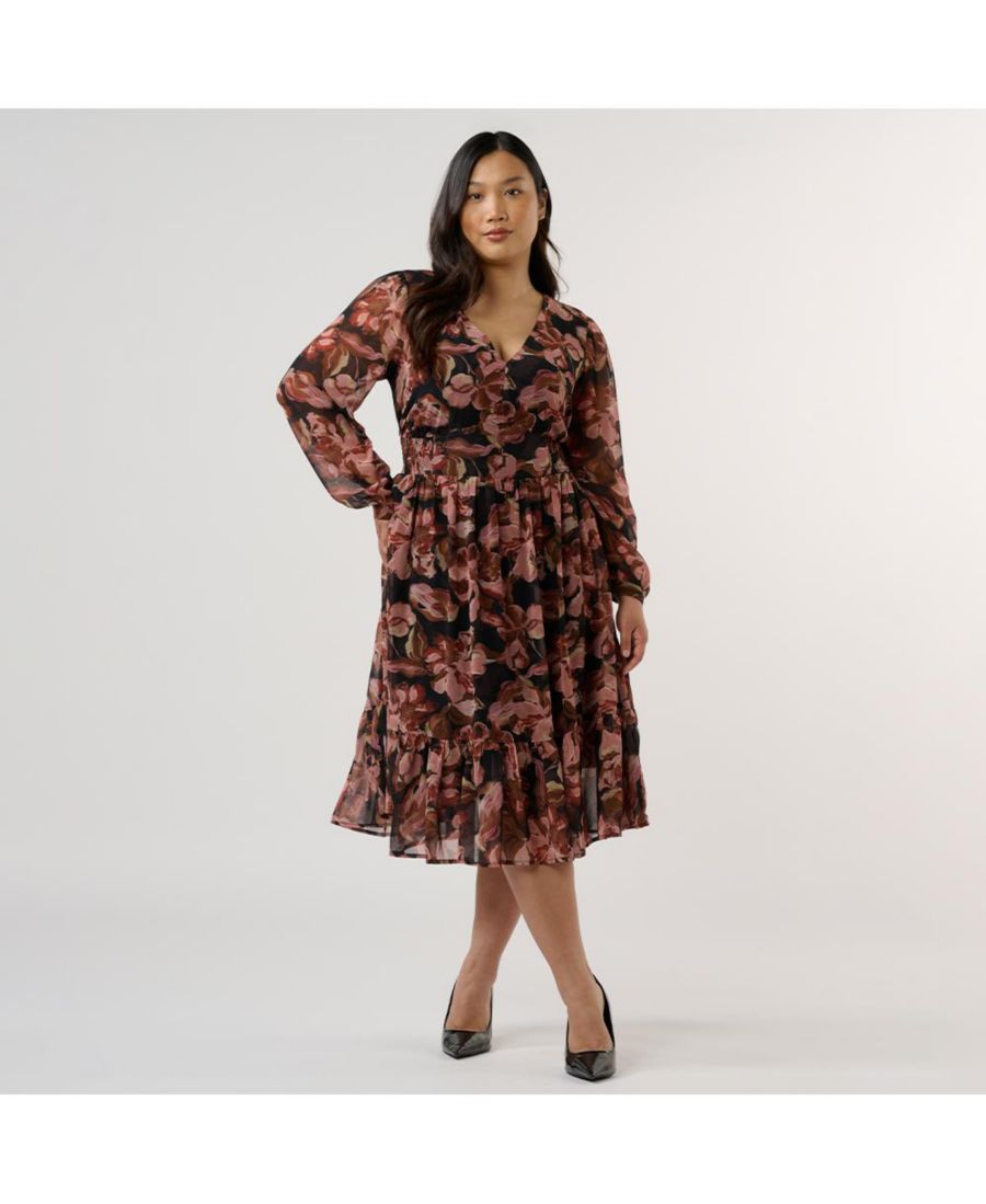 Это миди-платье приталенного силуэта с расклешенной юбкой, сшитое из гладкого полиэстера с полностью подкладкой, обеспечивает комфорт и подчеркивает фигуру благодаря эластичной талии. Глубокий V-образный вырез и длинные рукава создают изысканный и стильный образ, дополненный присборенным поясом для дополнительной формы. Многослойный подол и эластичные манжеты создают струящееся движение и женственный шарм; идеально подходит для создания образов как днем, так и вечером, с ботинками или туфлями на каблуках. Основной материал: 100% полиэстер. Подкладка: 100% полиэстер. Машинная стирка. Импортный товар.