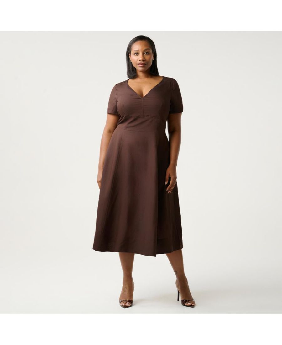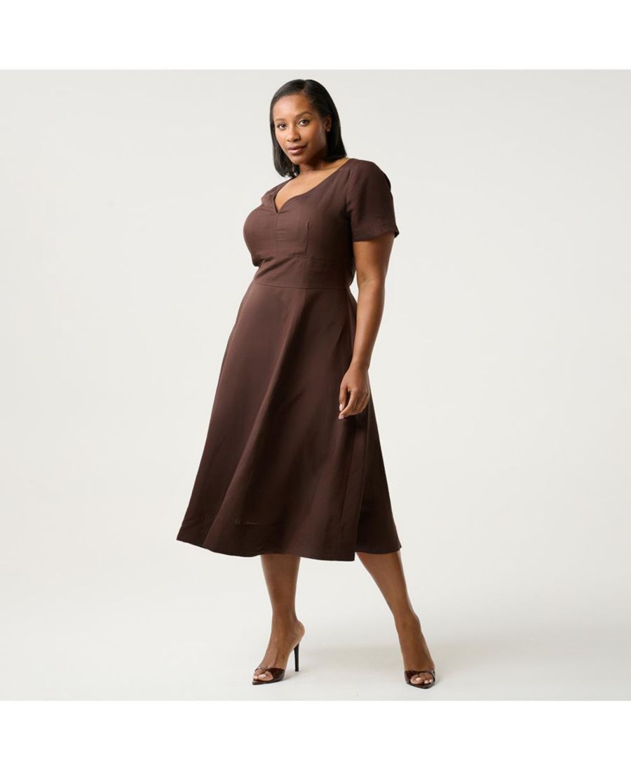 Элегантное и сдержанное платье Akira в шоколадном цвете станет вашей следующей вневременной вещью. Изготовленное из льняной смеси, это платье миди силуэта приталенное и расклешенное создано для того, чтобы подчеркнуть фигуру: V-образный вырез, короткие рукава и завышенная талия мягко выделяют силуэт. Сборка на спине обеспечивает комфорт, а плотная ткань прекрасно держит форму. Сочетайте его с аксессуарами в тон для изысканного повседневного образа или наденьте золотые украшения и туфли на каблуках для следующего званого ужина.