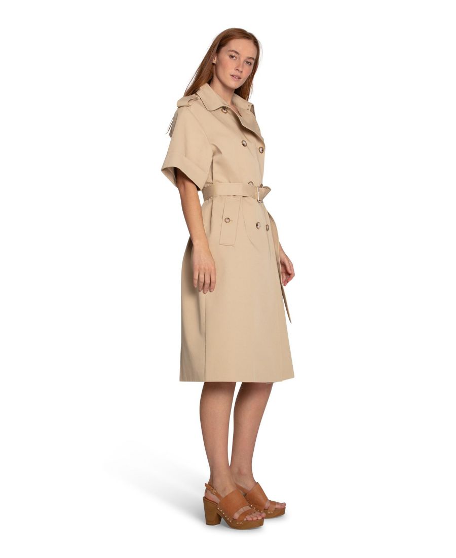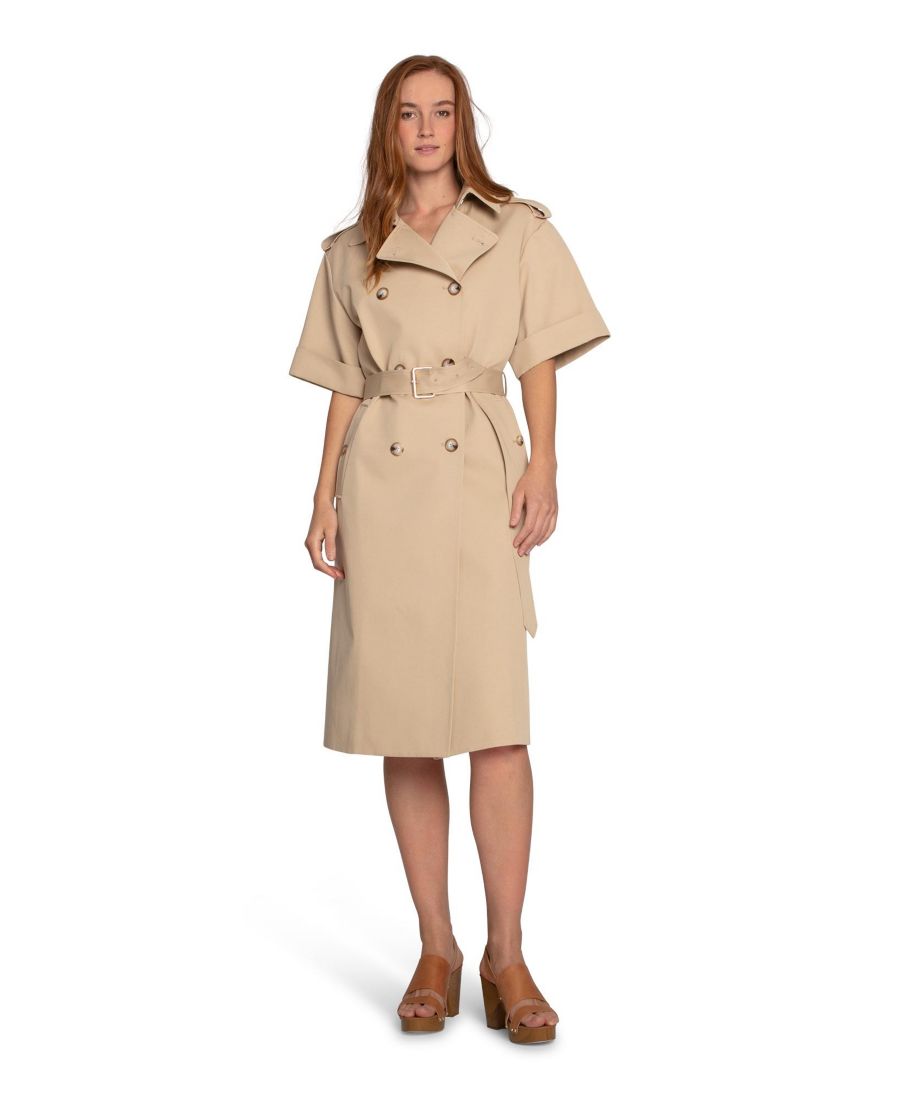 Платье-тренч с короткими рукавами Dust and Daring - это настоящий сезонный тренд, сочетающий классический крой с современной универсальностью. Изготовленное из легкой смеси хлопка и полиэстера и полностью на подкладке для комфорта, это двубортное платье имеет короткие рукава с манжетами, прорезные карманы и съемный пояс на талии, подчеркивающий силуэт. Благодаря свободному крою в области талии, его можно носить как элегантное платье или как тренч с короткими рукавами, что делает его вневременным элементом гардероба.