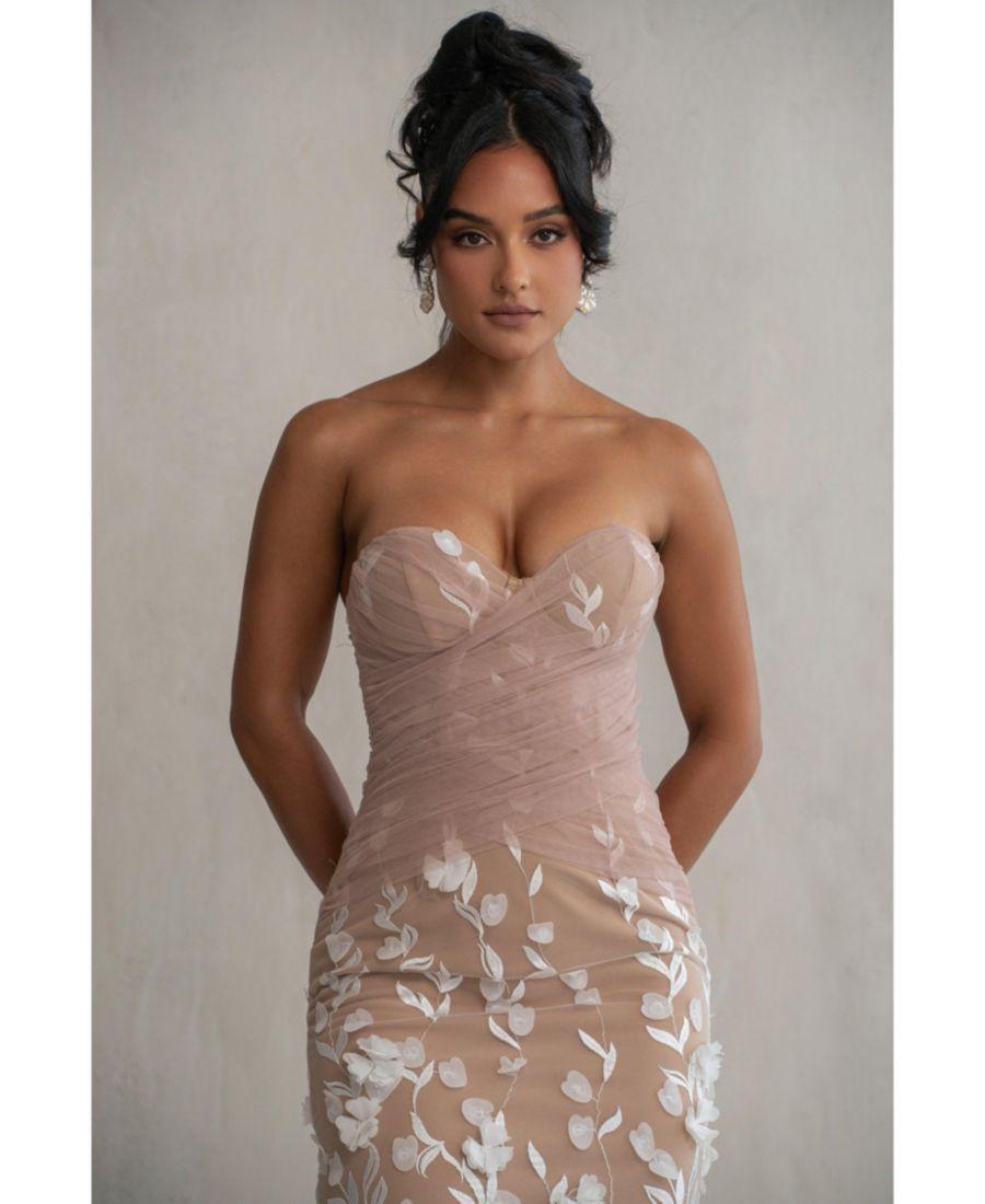 Создано для свадебной коллекции JLUXLABEL. Погрузитесь в роскошь с нашим вечным вышитым платьем. Это захватывающее дух свадебное платье изготовлено из высококачественных тканей и украшено замысловатой вышивкой роз на нежной сетчатой основе. Вырез в форме сердца со встроенными косточками и чашечками бюстгальтера с подкладкой и косточками создает безупречный силуэт. Платье дополнено подкладкой телесного цвета и силиконовыми вставками в области груди для надежной фиксации. Скрытая застежка-молния сзади.