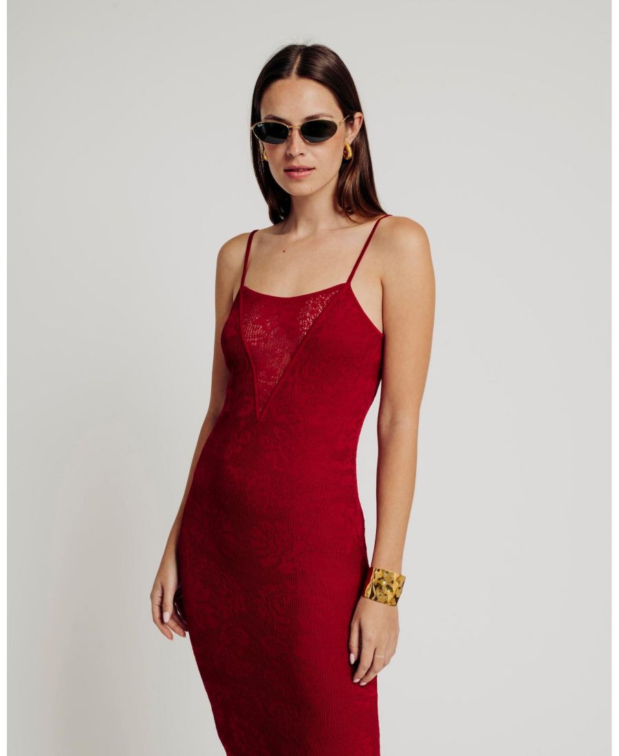 Подчеркните свой стиль платьем DELIA - изысканным платьем средней длины, выполненным из нежного кружева ажурной вязки. Платье полностью на подкладке для комфорта, имеет прозрачную V-образную вставку на вырезе спереди, добавляющую очарования классическому силуэту. Благодаря замысловатой кружевной отделке и вневременной привлекательности, платье Delia станет элегантным выбором для любого случая, требующего утонченности - идеально подходит для коктейльных вечеринок, свадеб или вечерних торжеств.