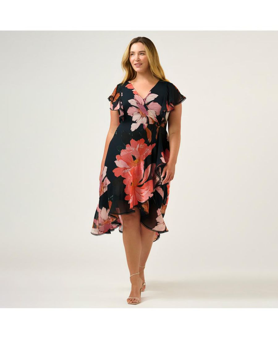 Это темно-синее с розовым миди-платье из неэластичного полиэстера имеет эластичную талию сзади для дополнительного комфорта. Полностью на подкладке для гладкой посадки и с удобной застежкой-молнией по центру спины. Легкий силуэт приталенный-расклешенный дополнен имитацией запаха и короткими рукавами с оборками, что придает платью женственный стиль и изящность движений. Нежные оборки на юбке и кружевная отделка на рукавах и юбке добавляют романтического очарования, делая это платье идеальным как для рабочих дней, так и для вечерних выходов. 100% полиэстер Машинная стирка Импортное производство