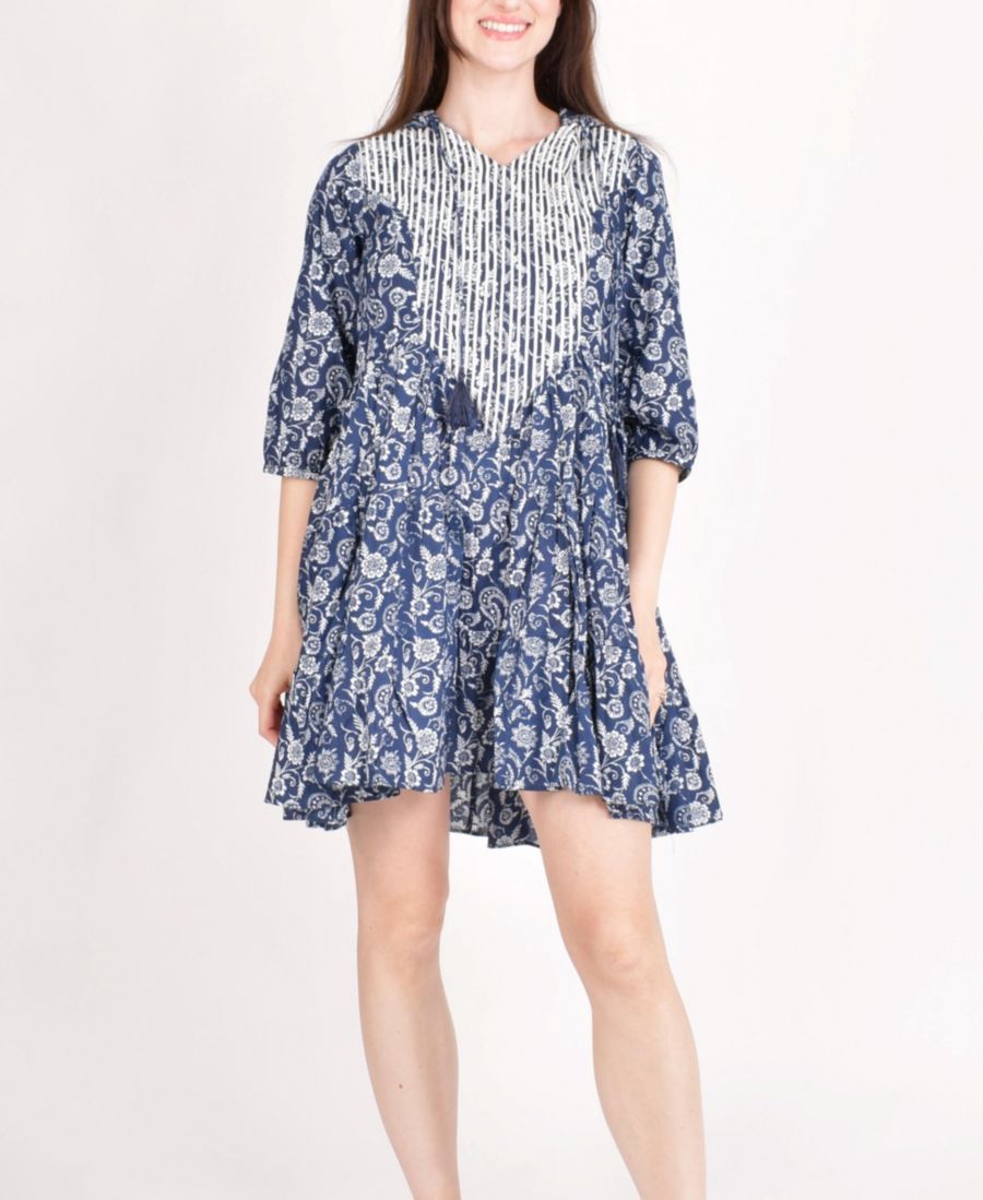Элегантное мини-платье с вышитым капюшоном синего цвета сочетает в себе комфорт и безупречный стиль. Украшенное цветочным принтом по всей поверхности и изящной вышивкой решемом вдоль выреза и лифа, оно создает яркий белый контраст на фоне насыщенного синего цвета. Благодаря современному капюшону и привлекательному мини-силуэту, это платье идеально подходит для неформальных бранчей, непринужденных вечеров или прогулок в выходные, когда вы хотите выглядеть безупречно.