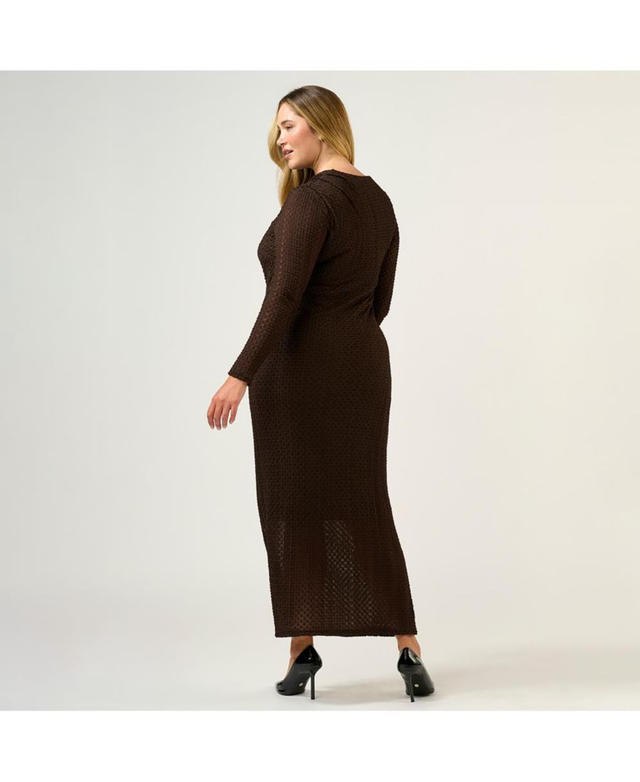 Привлеките всеобщее внимание в потрясающем платье Naomi - облегающем макси-платье, излучающем элегантность. Изготовленное из роскошной фактурной сетчатой ткани, это платье на подкладке сочетает в себе комфорт и стиль. Облегающий силуэт и длинные рукава создают изысканный образ, а сборки по бокам и асимметричный вырез добавляют визуальной привлекательности. Дополните образ любимыми туфлями на каблуках и эффектными украшениями для идеального торжества.