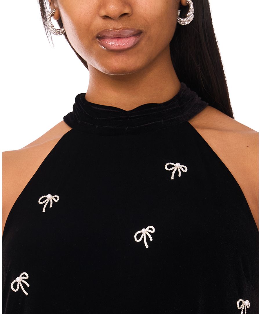 Элегантное и непринужденное платье CeCe имеет открытый воротник-халтер без рукавов с завязками для регулируемой, изящной посадки. Полностью на подкладке, что обеспечивает гладкую поверхность, делает его легким и привлекательным вариантом для торжественных случаев в теплую погоду или для нарядных дней. О БРЕНДЕ: CeCe - это современный бренд, вдохновленный романтическим взглядом на повседневность, отличающийся вкусом, остроумием и стилем на ходу.