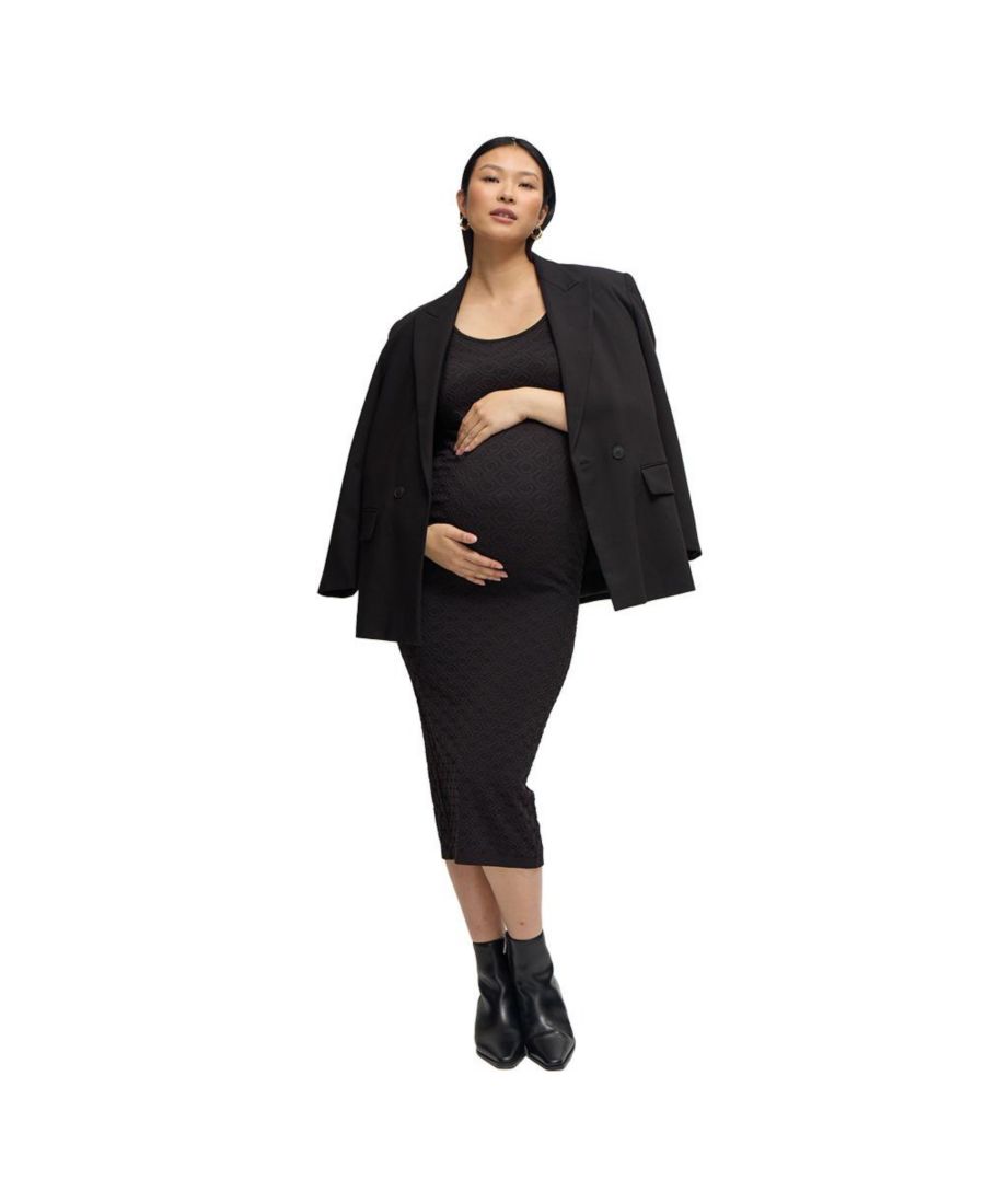 Элегантное, эластичное и созданное для свободы движений. Это платье миди связано из облегающей, невероятно комфортной ткани с тонкой текстурой и облегающим силуэтом, который подчеркнет достоинства фигуры на любом триместре. Благодаря высокой эластичности, отсутствию прилипания к телу и боковому разрезу для удобства, это платье станет идеальным выбором на все случаи жизни - просто добавьте ботинки, сандалии или пиджак, чтобы изменить образ.
