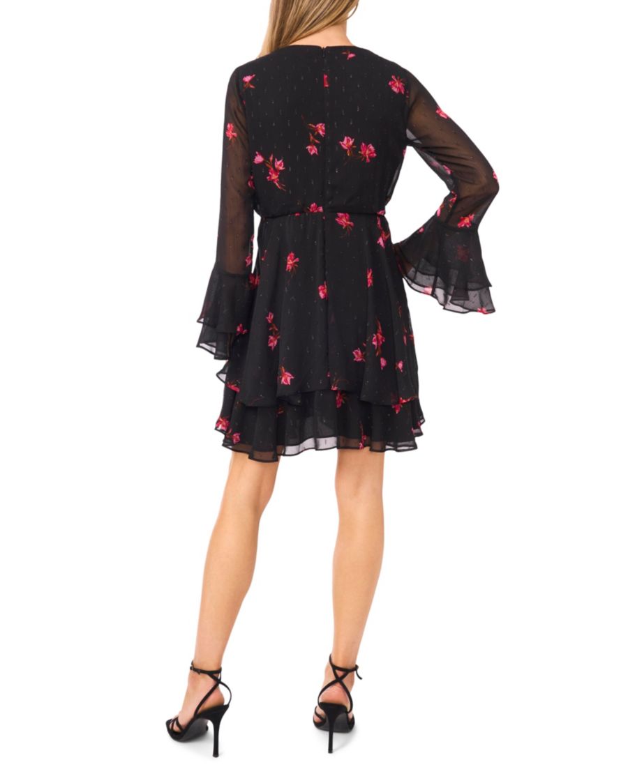 Женское мини-платье с длинными рукавами и оборками CeCe, Rich Black