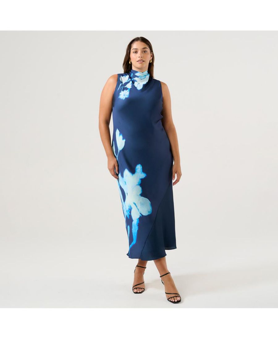 Выделитесь в потрясающем платье Mayla. Это платье без рукавов, выполненное в насыщенных темно-синих и голубых тонах, с эффектным цветочным принтом, добавит элегантности любому гардеробу. Платье легко надевается благодаря завязке на спине, создавая шикарный и элегантный образ. Идеально подходит для вечерних мероприятий. Сочетайте его с босоножками на ремешках и подходящим темно-синим клатчем для создания вневременного образа.