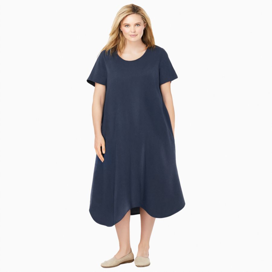 Наше платье с драпированным подолом - это ультра-свободный фасон, который легко можно сочетать с жакетами и аксессуарами, создавая как повседневные, так и нарядные образы. Оно имеет красивый драпированный подол и изготовлено из мягкого, эластичного трикотажа, за которым легко ухаживать. Вырез горловины лодочка. Короткие рукава. Боковые карманы. Драпированный подол. Материал: трикотаж/полиэстер (импортный). Машинная стирка.