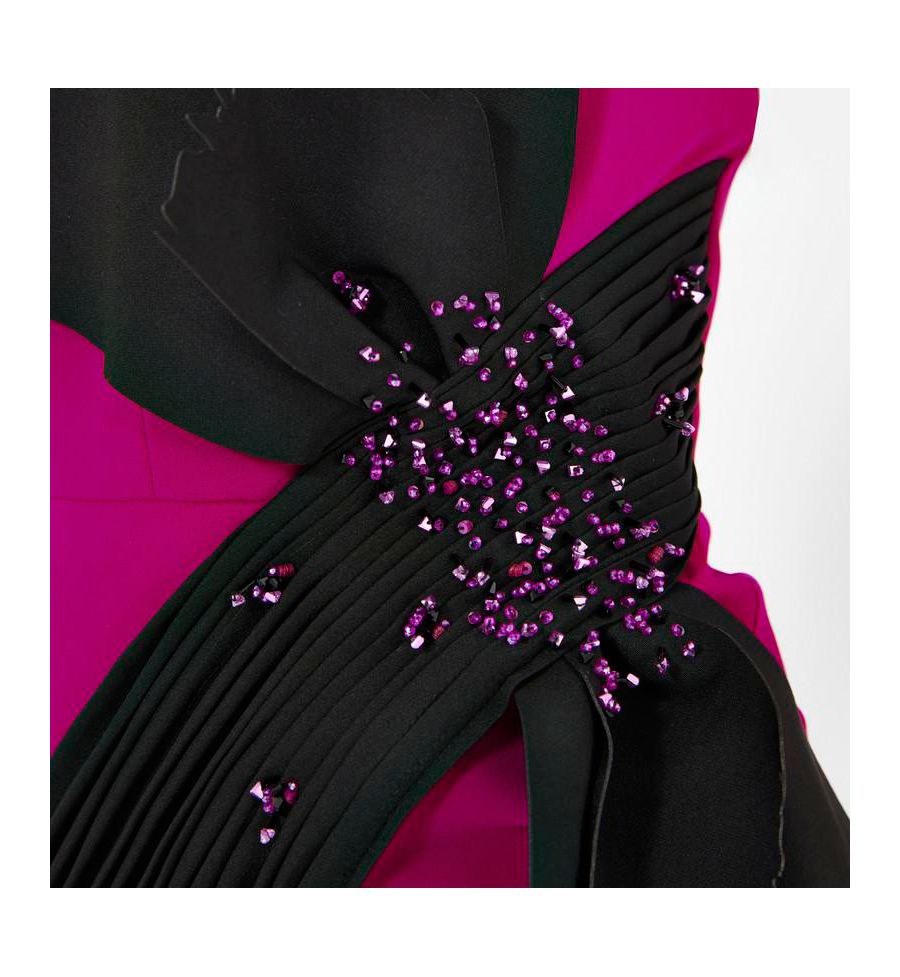 Эффектный вырез с облегающим лифом А-образный силуэт в стиле колор-блок, сочетающий пурпурный и черный цвета Большой бант на талии с бисерной отделкой Верх | Подкладка: полиэстер Химчистка Импортный товар