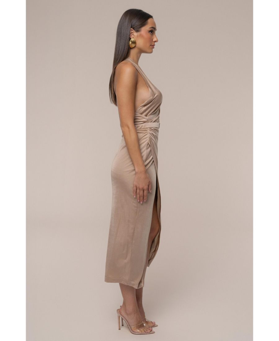 Юбилейное платье-халат с поясом JLUXLABEL, Beige