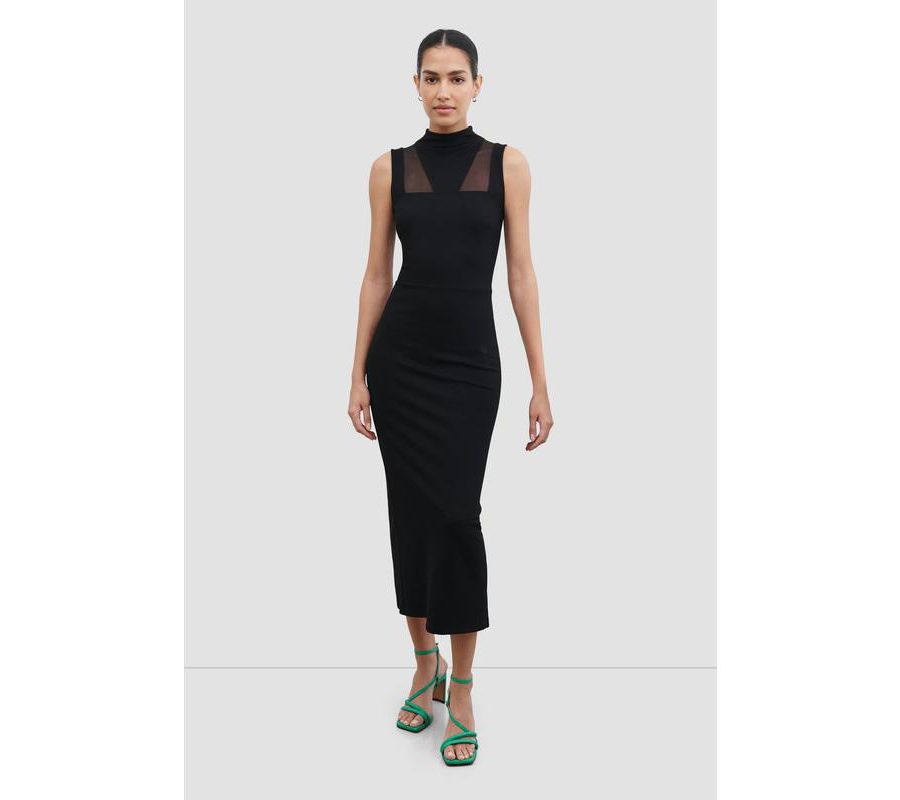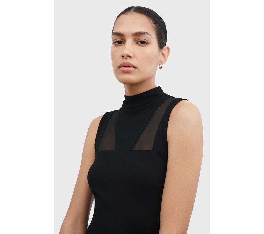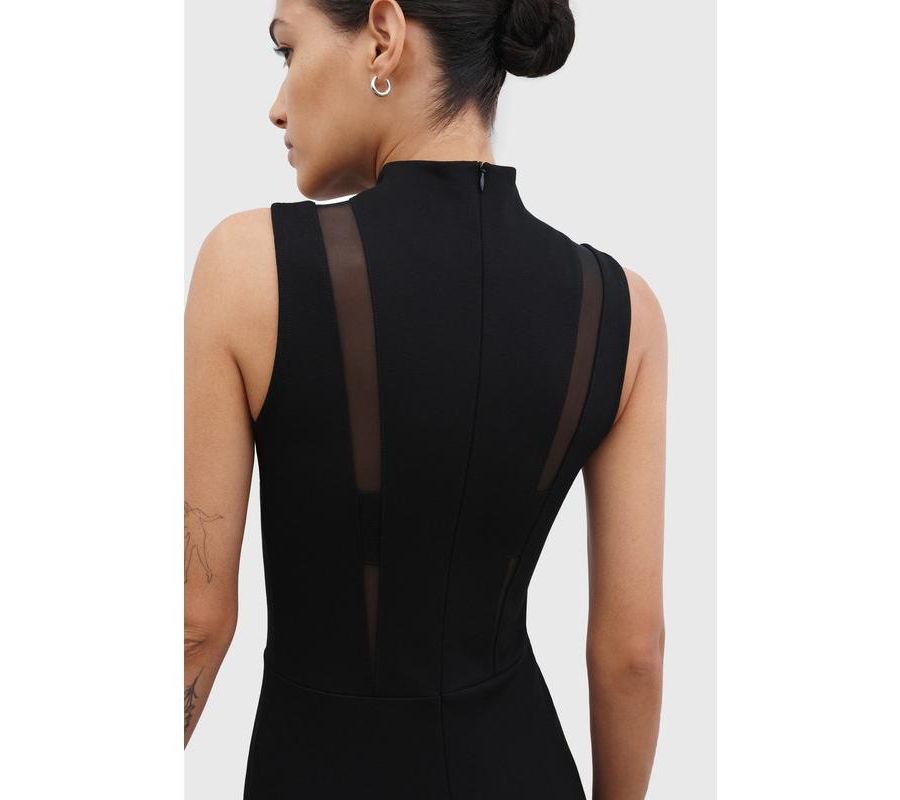Примерно 131,5 см в длину Без рукавов Высокий воротник-стойка с прозрачными сетчатыми вставками Приталенный крой, средняя эластичность Разработано в Нью-Йорке | Изготовлено вручную в Европе Информация о размерах: Соответствует размеру Приталенный крой в области груди, талии и бедер. Слегка эластичный Общая длина от центра спины составляет примерно 131,5 см Астрид ростом 175 см, носит размер XS Ткань понте: Турция, Греция / Сетка: Китай Ручная стирка Импорт