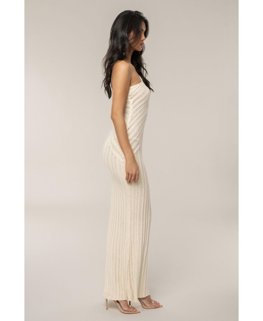 Женское вязаное макси-платье с бахромой JLUXLABEL, Ivory