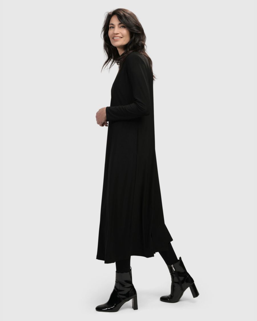 Это платье миди, подходящее как для дня, так и для ночи, обладает бесконечным очарованием и вневременным стилем. Сшитое из мягкой, эластичной ткани понте, оно выглядит так же хорошо, как и ощущается на теле. Легкий классический трикотаж облегает фигуру сверху и расширяется в юбку А-силуэта для комфорта. Боковые карманы идеально подойдут для хранения блеска для губ или ключей.