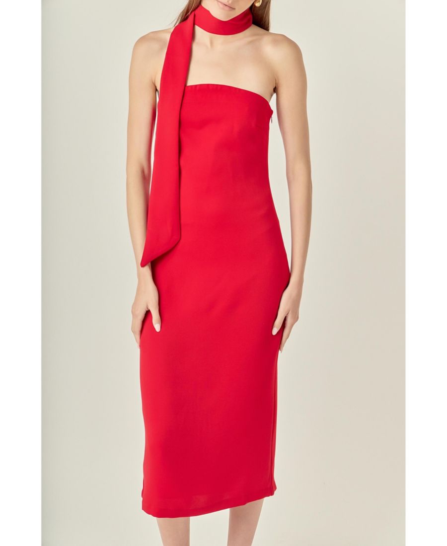 Платье-миди с чокером - элегантный выбор для любого случая. Его привлекательный силуэт-футляр подчеркивается открытым декольте и разрезом сзади. Для создания модного женственного образа завяжите чокер на шее и произведите фурор. Это платье также практично благодаря потайной молнии и простым инструкциям по уходу. Ручная стирка в холодной воде и глажка при низкой температуре.