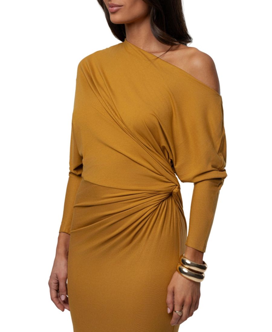 Наше макси-платье Eternal Obsession - это пленительное сочетание элегантности и современной изысканности. Модель на одно плечо в земляном оттенке отличается изящно драпированным лифом и сборками на талии, создавая привлекательный силуэт. Длинные облегающие рукава и длина до пола добавляют платью вневременной шарм, идеально подходящий для торжественных случаев.