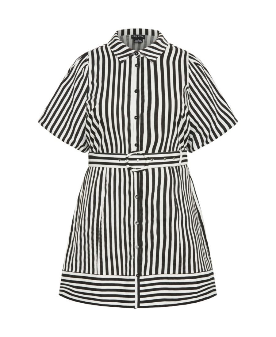 Произведите фурор в платье Stripe May! Это мини-платье с классическим воротником и застежкой на пуговицы спереди имеет элегантные рукава-фонарики длиной до локтя с эластичными манжетами, сшито из комфортной хлопковой ткани и дополнено функциональными карманами, съемным поясом на талии и удобными петлями для ремня, что делает его универсальным и стильным.