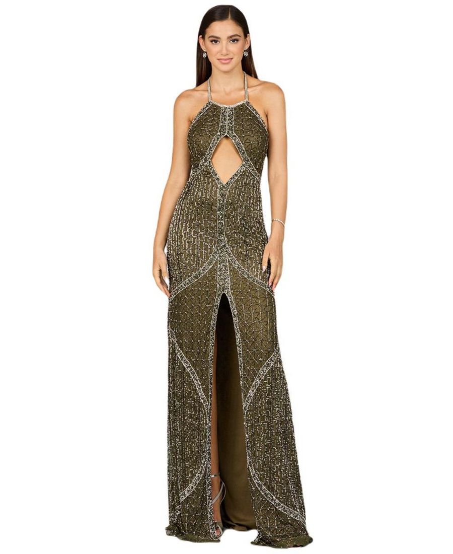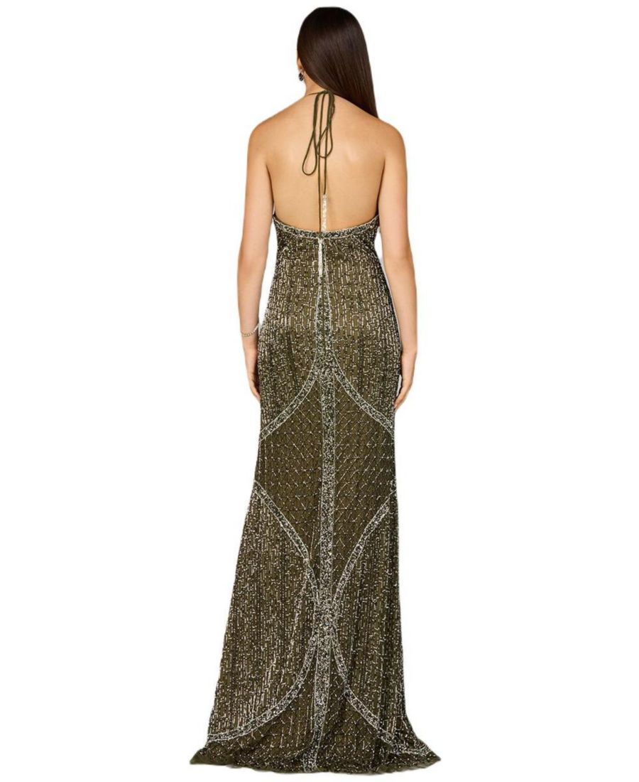 Женское симметричное платье с воротником-халтером, расшитое бисером Lara, Olive
