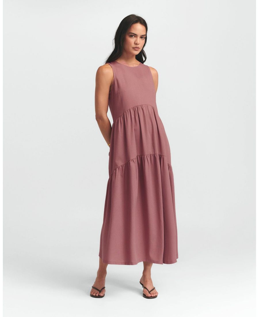 Платье REMI TIERED DRESS от ST MRLO - это легкое и элегантное платье средней длины, идеально подходящее для непринужденного летнего стиля. Изготовленное из легкой льняной смеси, это платье без рукавов имеет привлекательный круглый вырез горловины.
