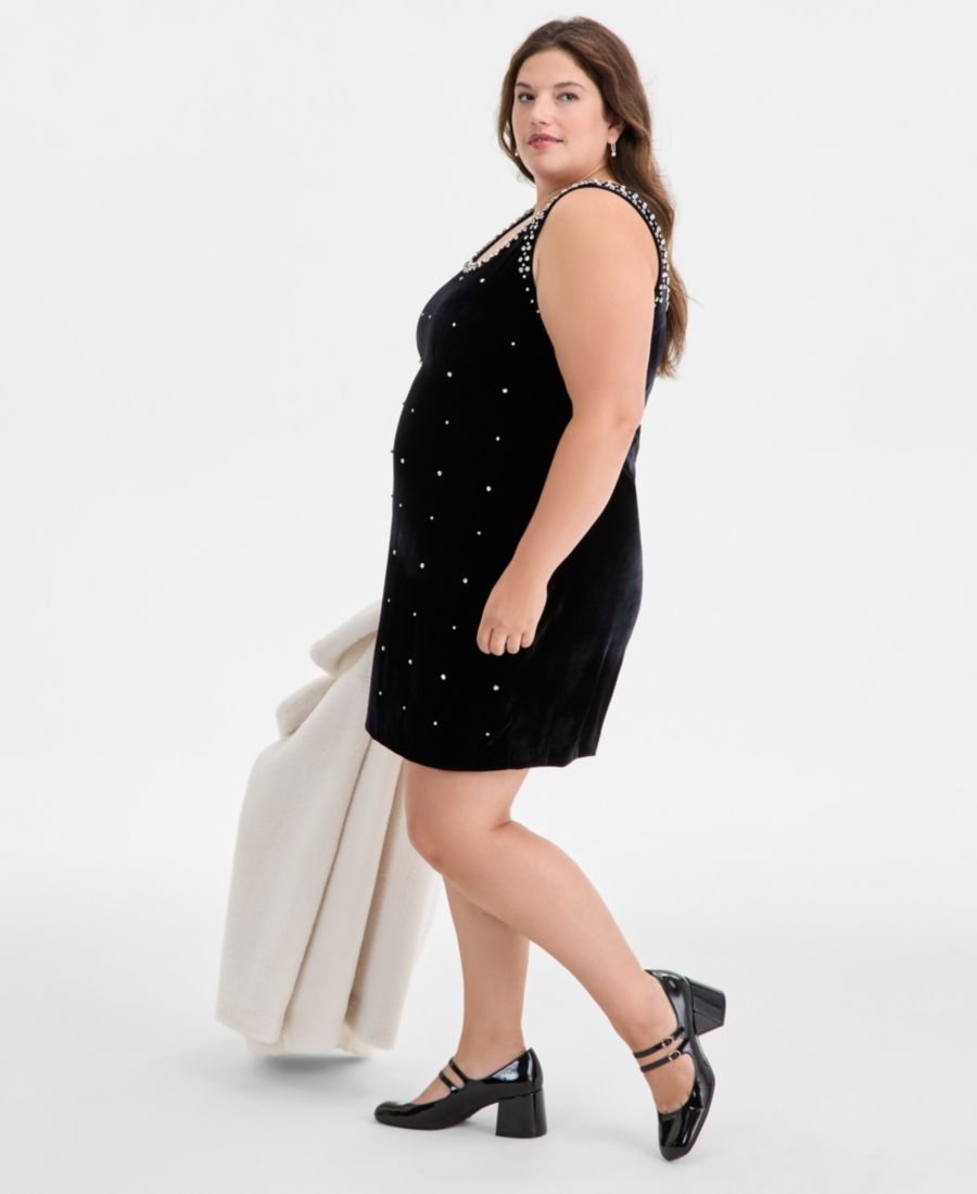 Модное мини-платье больших размеров, украшенное стразами On 34th, Deep Black