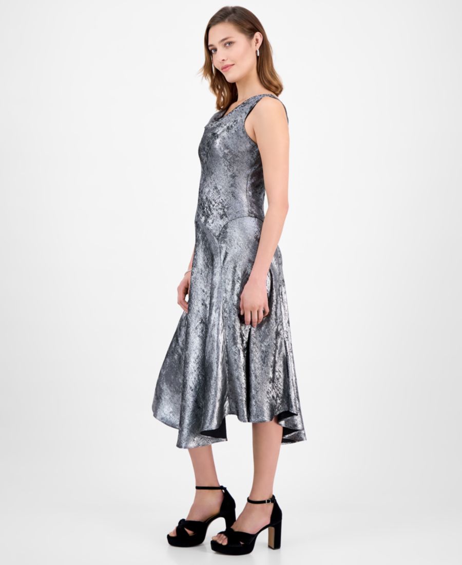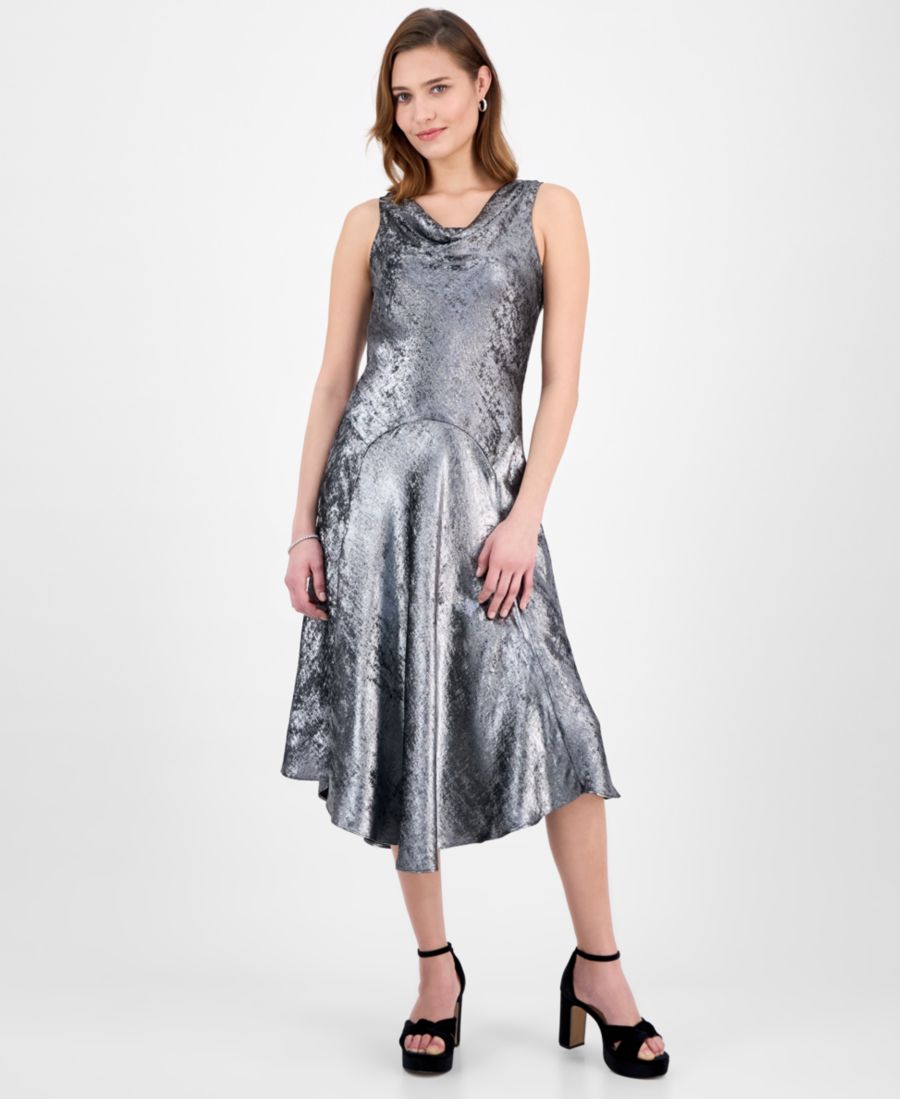 Женское атласное платье миди с воротником-хомутом Robbie Bee, Silver