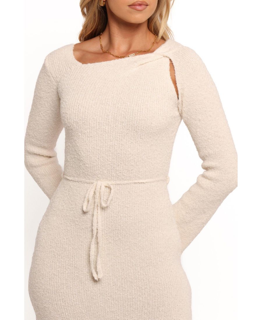 Это платье, сшитое из роскошного трикотажа букле, отличается элегантным силуэтом, длиной миди и квадратным вырезом горловины, а также интересной деталью в виде закрученного элемента, добавляющей современный штрих. Длинные рукава и вырез спереди придают платью изысканность, идеально подходящую для перехода от дневного образа к вечернему.