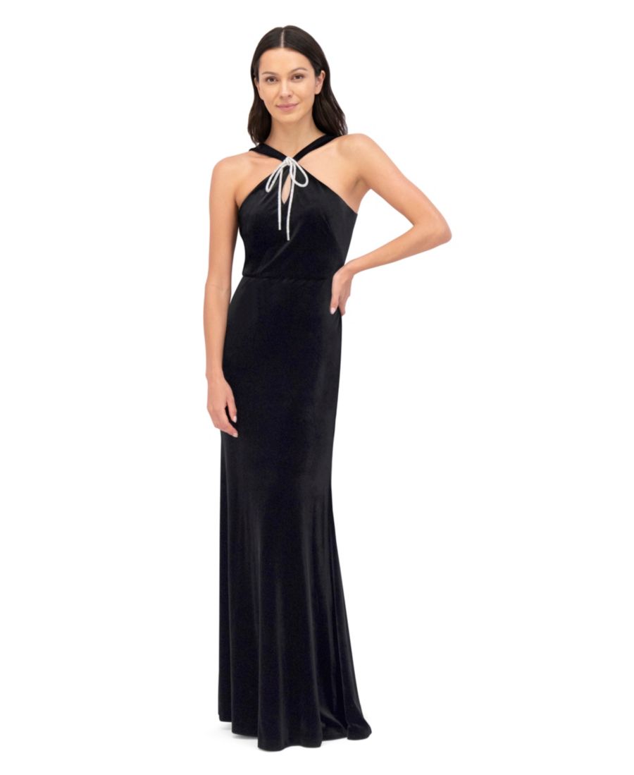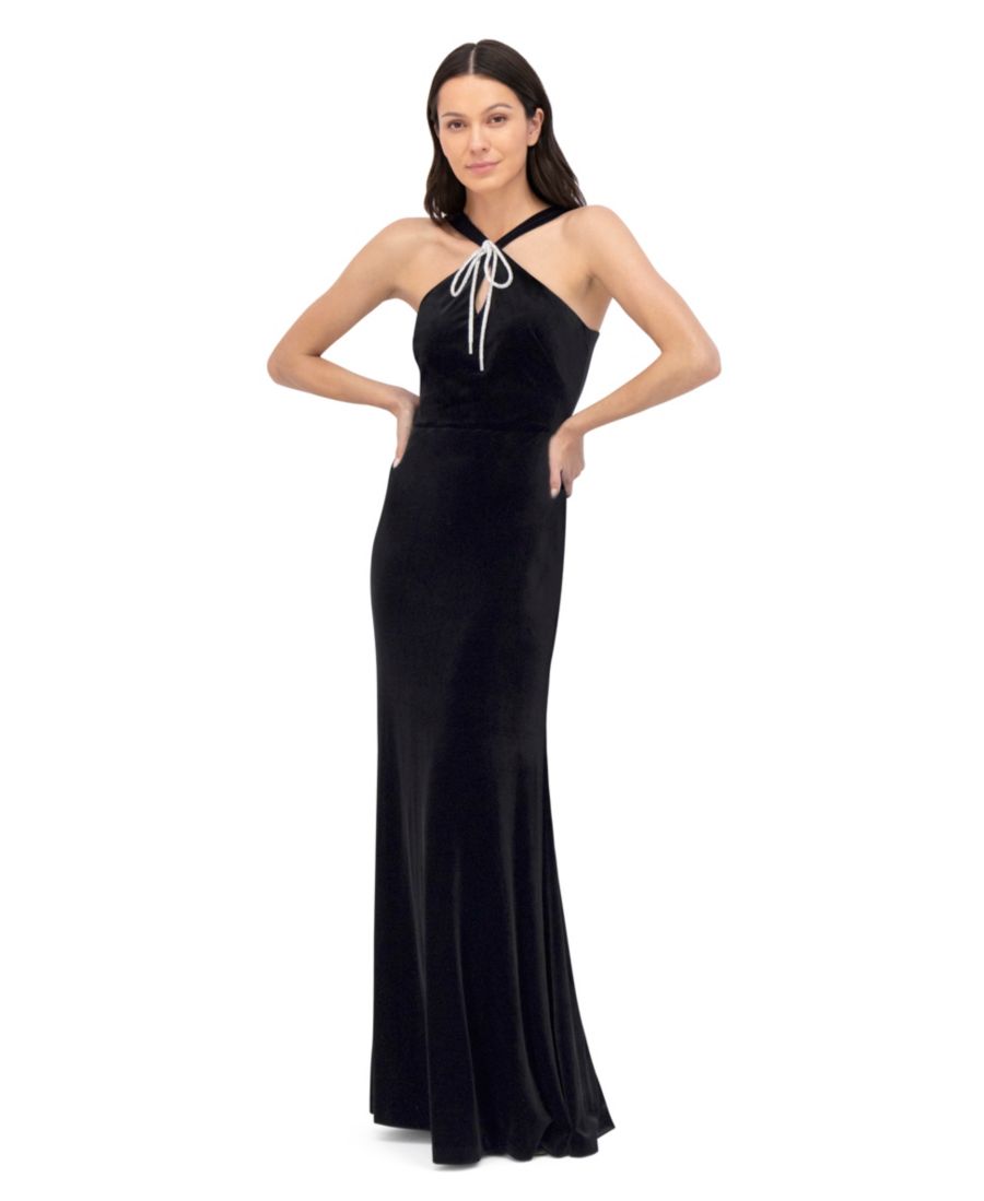 Небольшое бархатное платье с воротником-халтером Eliza J, Black