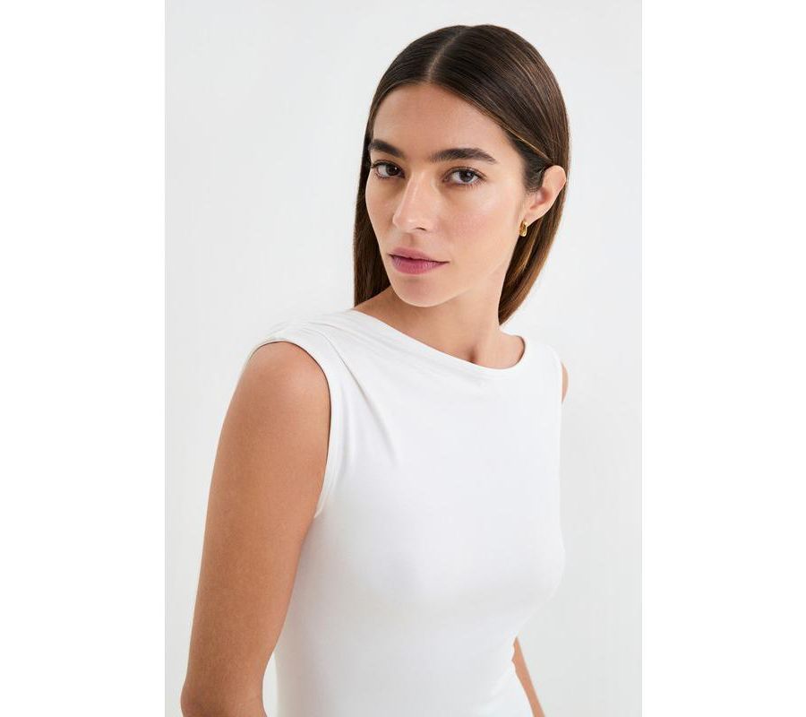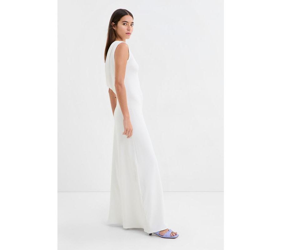 Платье Laurel от Marcella - это вневременная и эффектная вещь. Асимметричные бретели ниспадают гламурным каскадом с одной стороны спины. Облегающий лиф без рукавов из экологичного европейского трикотажа плавно переходит в юбку А-силуэта, сшитую из более плотного трикотажа кремового цвета для дополнительной закрытости.