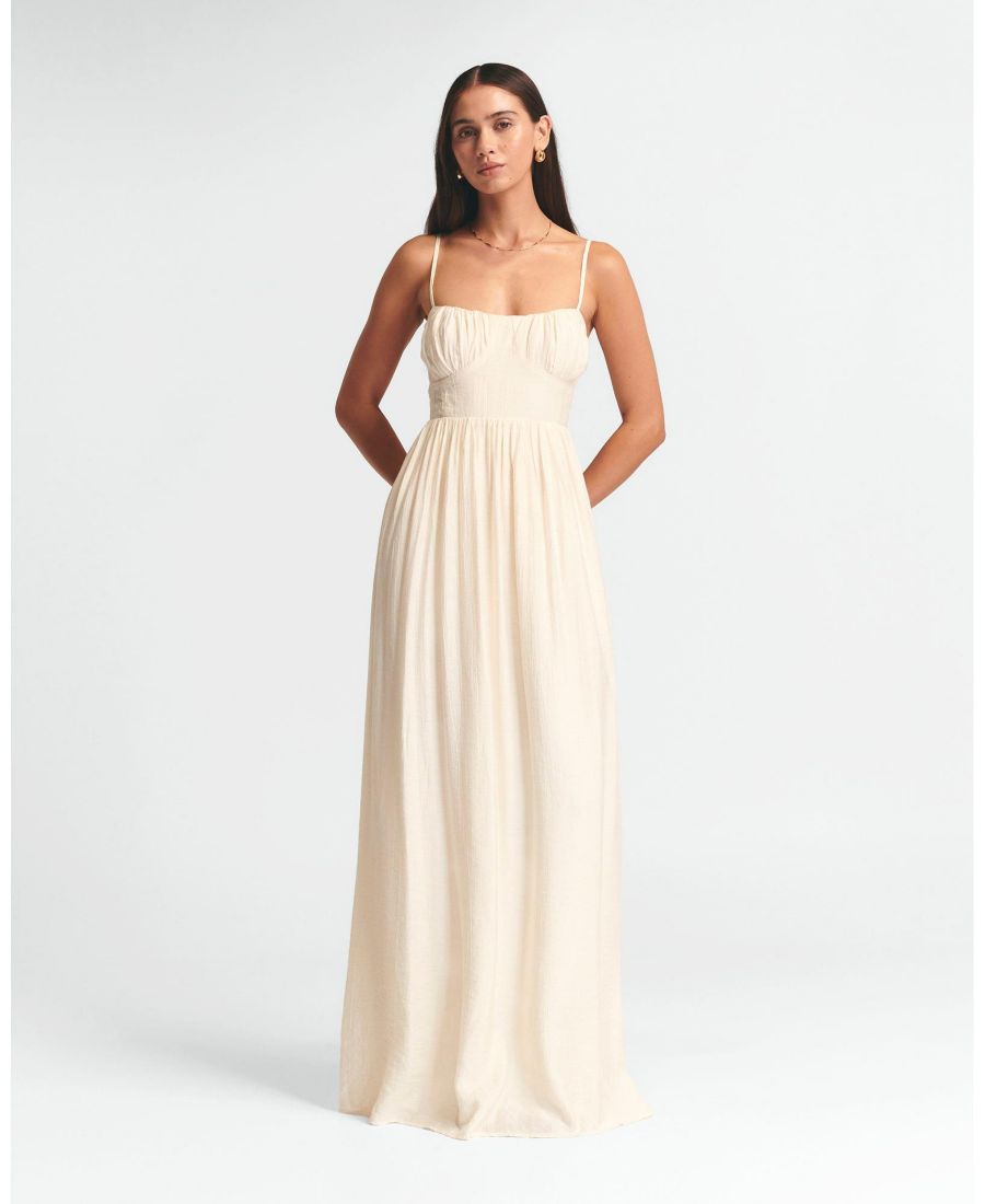 Платье-макси George от ST MRLO - это мечтательное, струящееся платье средней длины из тканого материала, воплощающее в себе суть непринужденной летней элегантности. Его белоснежный силуэт создает романтичный и вневременной образ, идеально подходящий как для особых случаев, так и для изысканных повседневных моментов.
