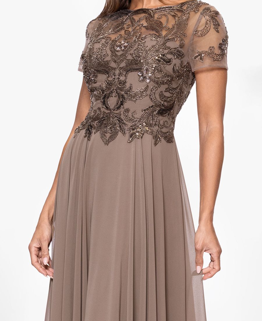 Женское платье с вырезом-лодочкой, расшитое бисером XSCAPE, Mocha