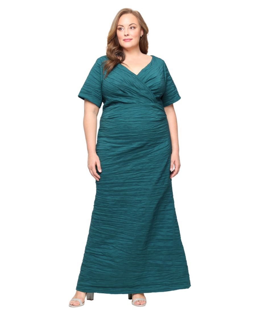 Длинное платье из эластичной жатой тафты больших размеров Alex Evenings, Emerald Green