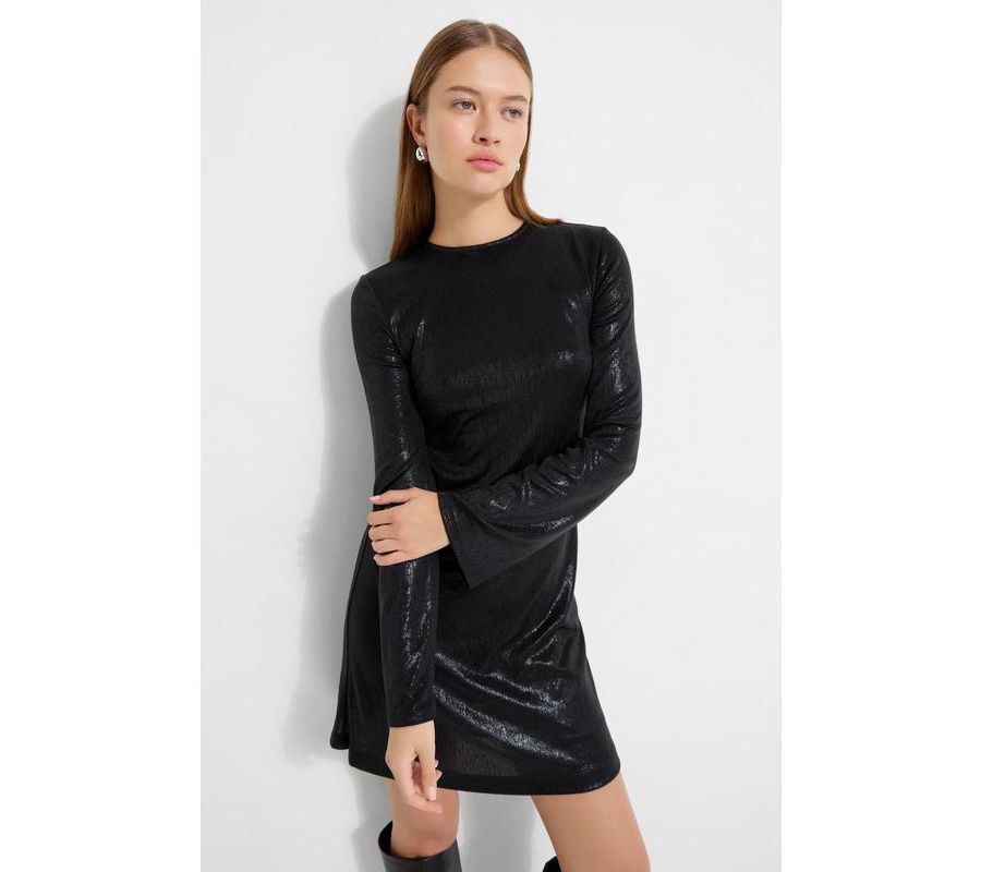 Платье Adya от Marcella - это сверкающее мини-платье из эффектного блестящего эластичного трикотажа с люрексом и мягкой сетчатой подкладкой. Длинные расклешенные рукава и детали, подчеркивающие фигуру, придают платью легкую структуру, а потайная молния делает силуэт гладким и изысканным, готовым блистать.