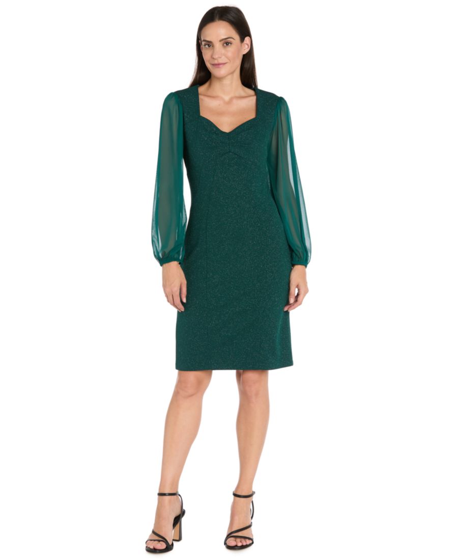 Отмечайте каждый праздник или вечеринку с уверенностью в этом платье-футляре от R & M Richards, с длинными рукавами и вырезом в форме сердца, создающим привлекательный, женственный силуэт. Изящная застежка-молния сзади и полная подкладка обеспечивают комфорт и делают процесс одевания легким и приятным.