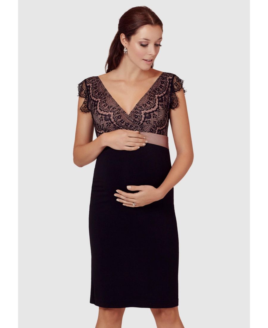 Идеальное для вечеринки кружевное платье для беременных Rosa привнесет вневременной стиль в ваше следующее особое событие. Нежное кружево с фестончатым краем и бахромой накладывается на нежно-розовый лиф с легким блеском, идеально дополняя нашу эффектную юбку из вискозного трикотажа черного цвета.