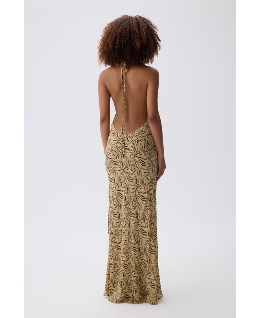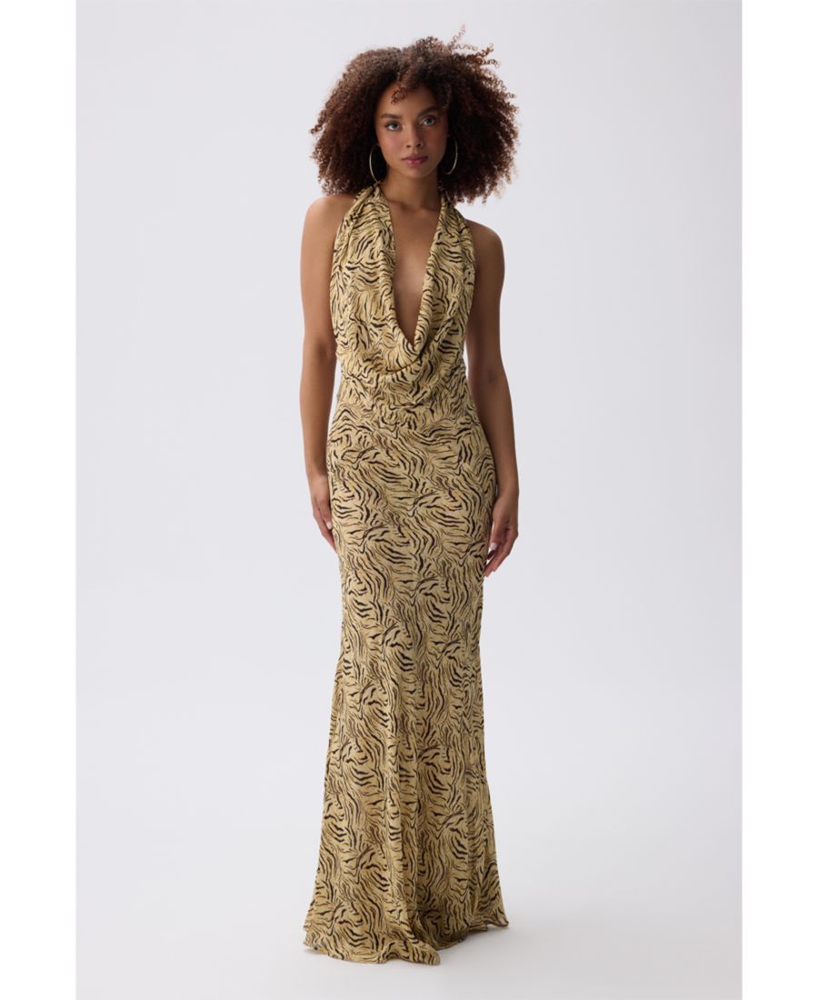 Платье Siren сочетает в себе воротник-халтер и смелую открытую спинку, излучая уверенность и стиль. Яркий леопардовый принт добавляет энергии и характера, а длина макси обеспечивает комфортную, но эффектную посадку. Незаменимый вариант для того, чтобы произвести впечатление на особых мероприятиях.