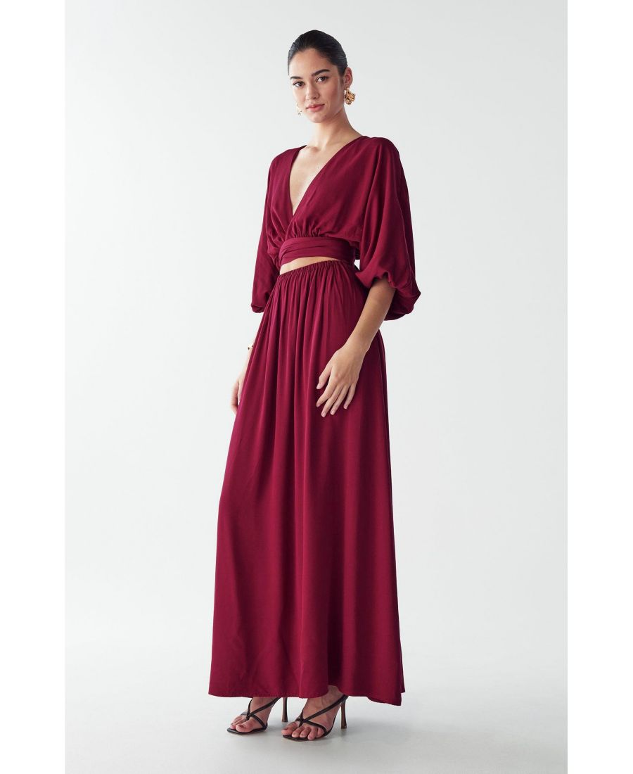 Платье-макси ROWE от ST MRLO - это очаровательное тканое платье макси, воплощающее в себе непринужденную элегантность. Благодаря эффектному глубокому V-образному вырезу и пышным рукавам, это платье, благодаря изысканному крою и насыщенному малиновому оттенку, преобразит ваш вечерний гардероб.