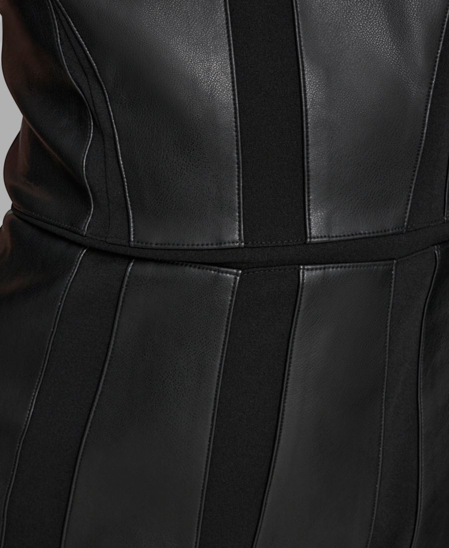 Платье А-силуэта от BCBG, выполненное в технике пэчворк из искусственной кожи, придает ему дерзкий вид. Круглый вырез горловины и застежка-молния сзади делают его смелым и подходящим для вечернего выхода. Отделка из искусственной кожи добавляет современный штрих к вашему праздничному образу.