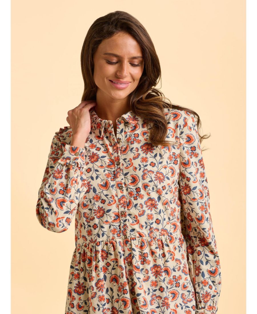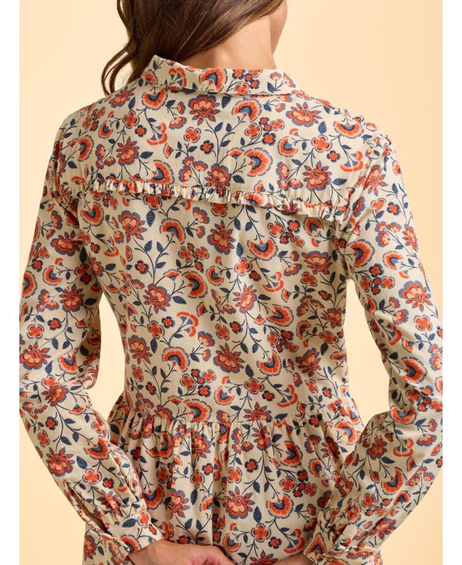 Цветочные принты подходят не только для лета - это платье-рубашка с цветочным узором пейсли создано для прохладного времени года. Сборки на талии, расклешенная юбка и воротник-стойка делают силуэт невероятно привлекательным. Дополните образ золотыми украшениями и ботинками челси на каблуке.