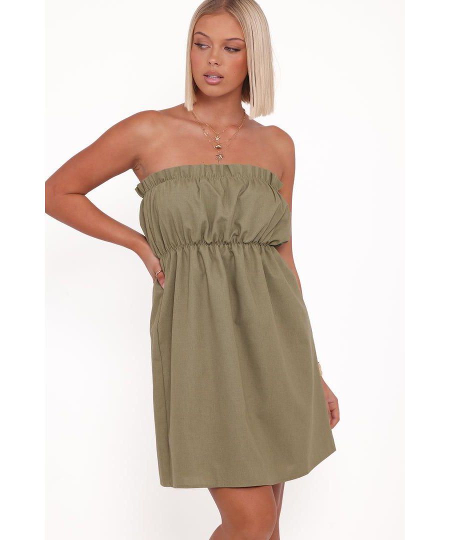 Окунитесь в летнюю элегантность с платьем-миди Stratton в цвете Листовая зелень. Это платье без бретелей идеально подойдет для солнечных бранчей или вечеринок при лунном свете. Благодаря прямому эластичному вырезу и оборкам, оно легко сочетает в себе современный шарм и вневременную грацию.