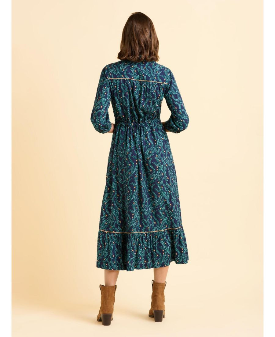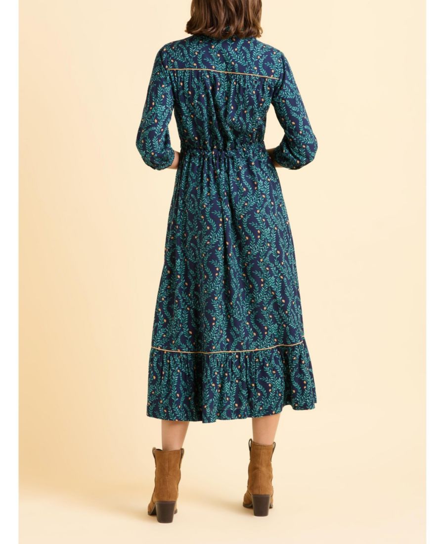 Легкое и свободное платье Skye станет прекрасным дополнением к вашей коллекции повседневных платьев. Украшенное принтом в виде листьев и цветов, оно дополнено контрастной окантовкой, воротником Питер Пэн и мягкой баской по низу. Кроме того, скрытая кулиска создает привлекательный силуэт.